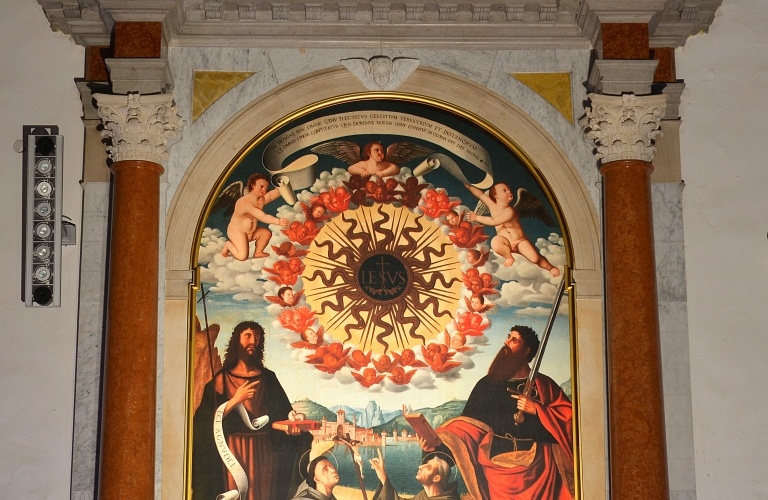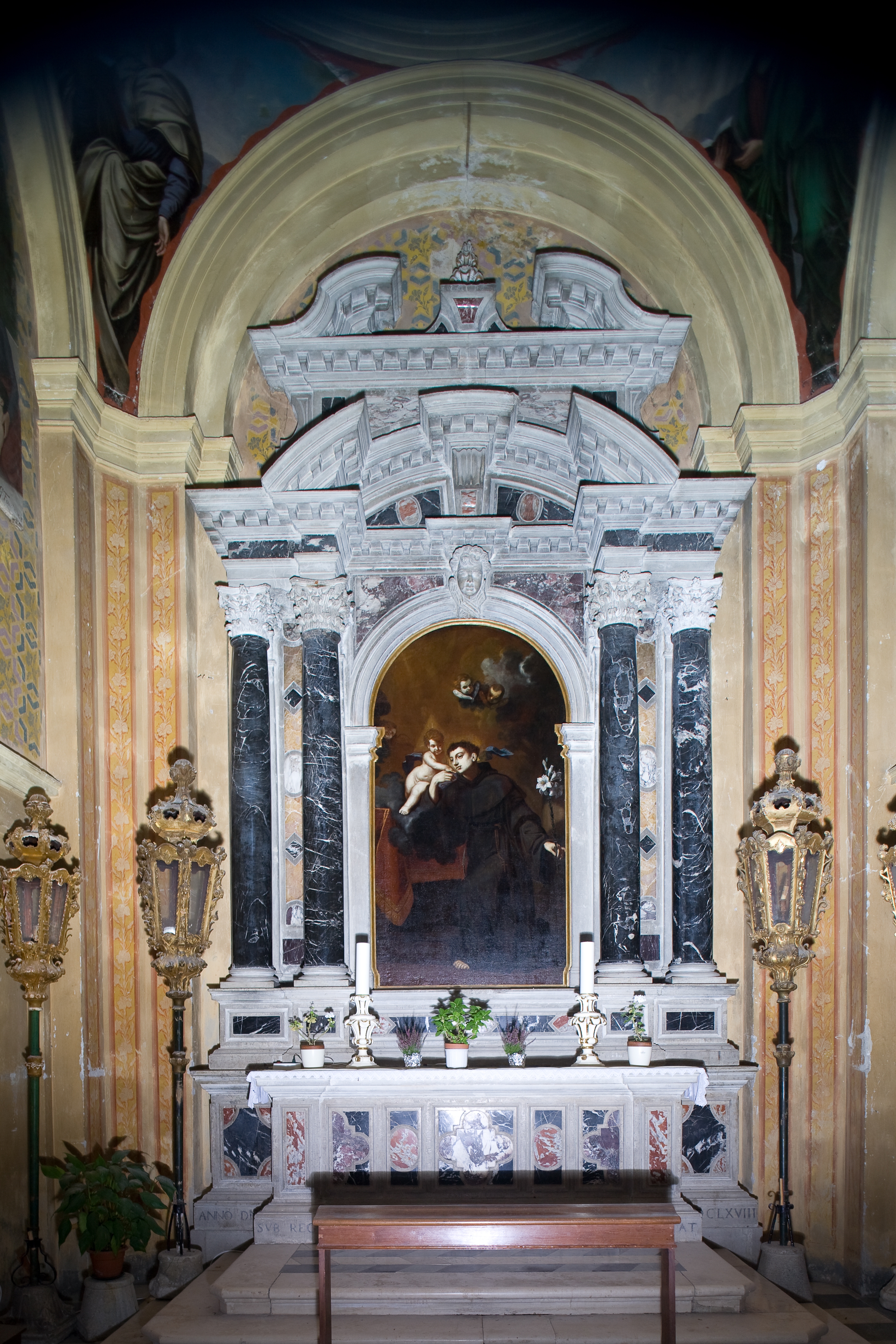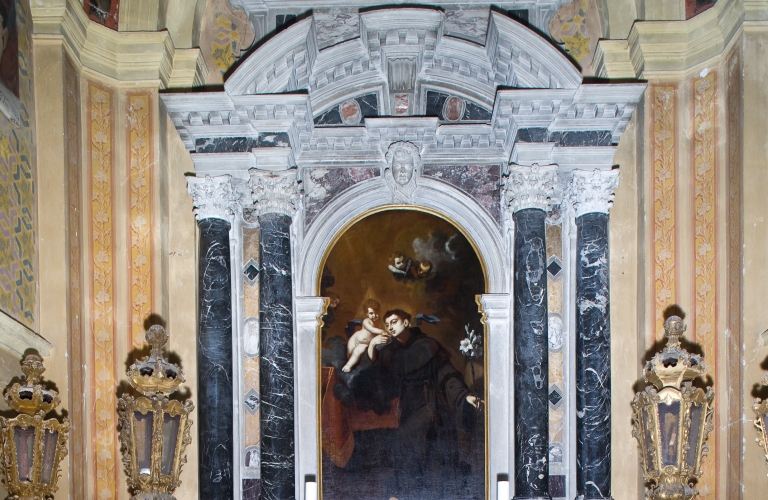 In addition to the main altar, the church has six side altars. Starting from the entrance, the first altar on the left is dedicated to Jesus’ name. Its original altarpiece is among the ones still retained inItaly. The altar in the side chapel is dedicated to St. Anthony of Padua. The last altar on the left is dedicated to Our Lady of Lourdes.