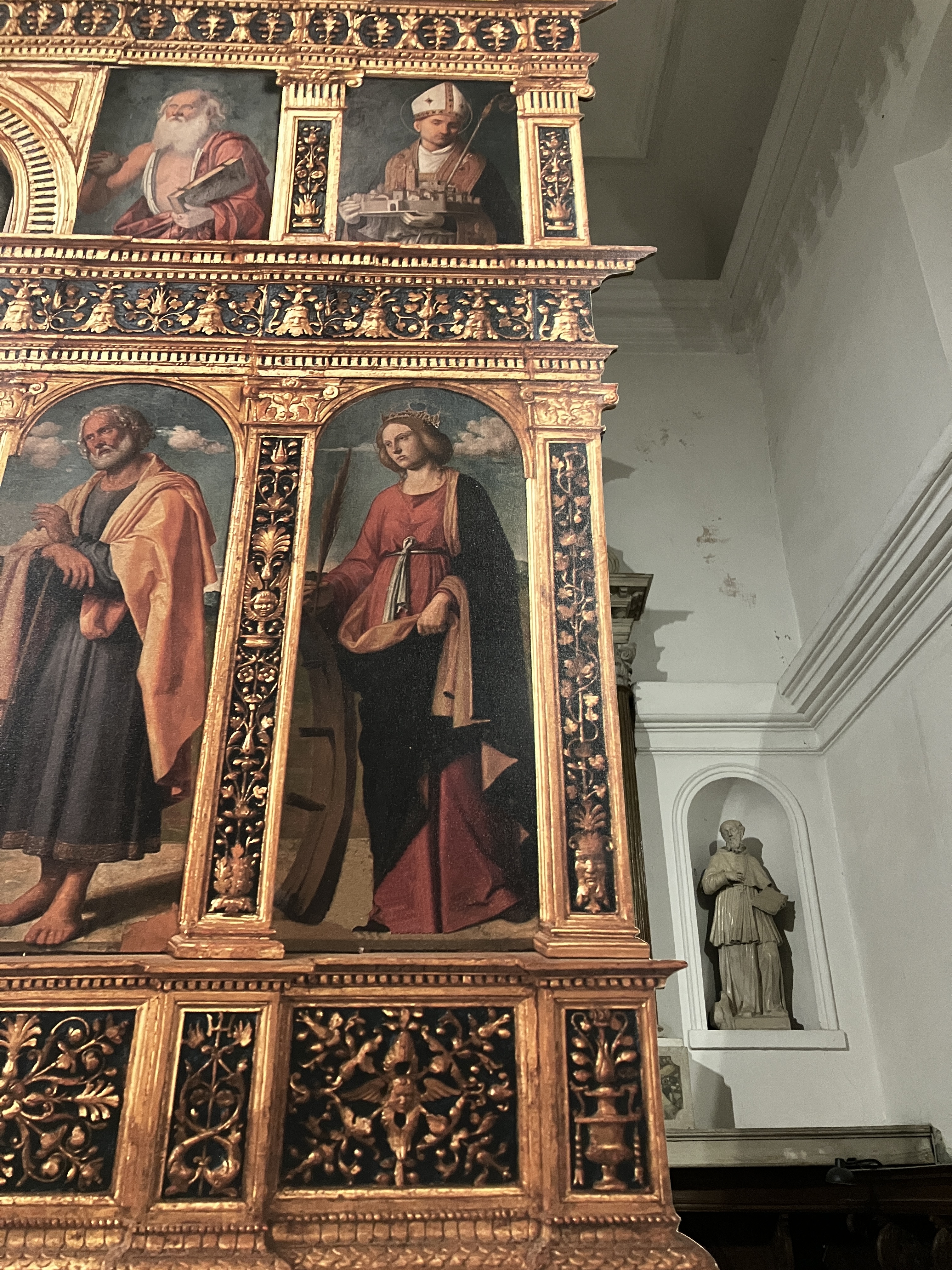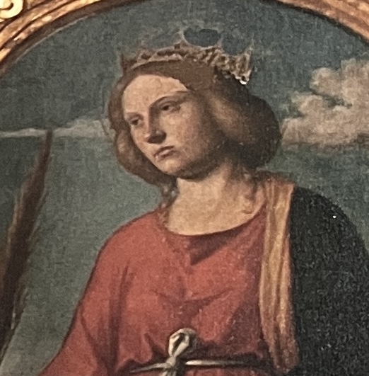 V središču naše cerkve je Poliptih Cima de Conegliana. Na njem najdemo nekaj svetnikov. Ena od svetnic, ki je upodobljena na poliptiju je sv. Katarina Aleksnadrijska.
