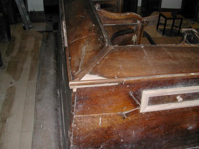 Restavratorska in konservatorska dela na pohištvu in lesenem oltarju, ki se dviguje na oratorijem, sta opravila Nadia Bertoni in Stéphane Cren iz podjetja ARC restauro iz Gorice. Nad vsemi deli pa je skrbno bdela enota Zavoda za varstvo kulturne dediščine Slovenije iz Pirana. Obnovitvena dela, ki so bila opravljena v letih 2004 - 2006, je delno sofinancirala Beneška pokrajina (Regione del Veneto).