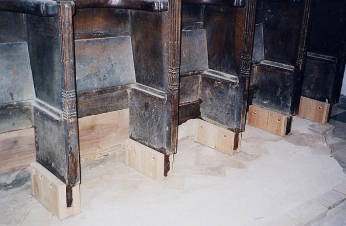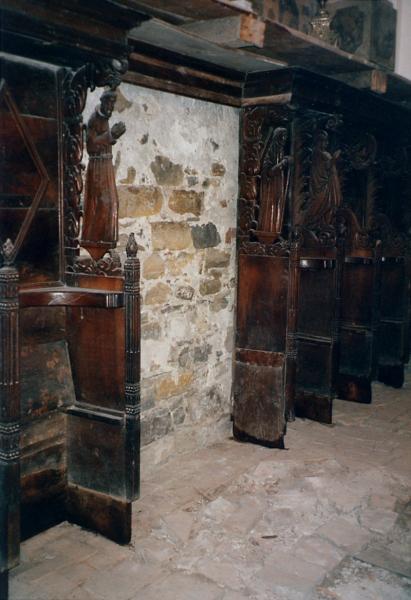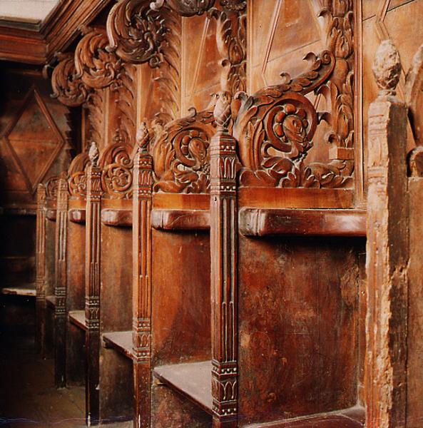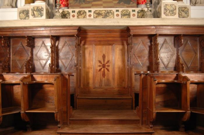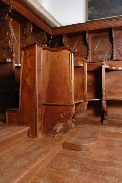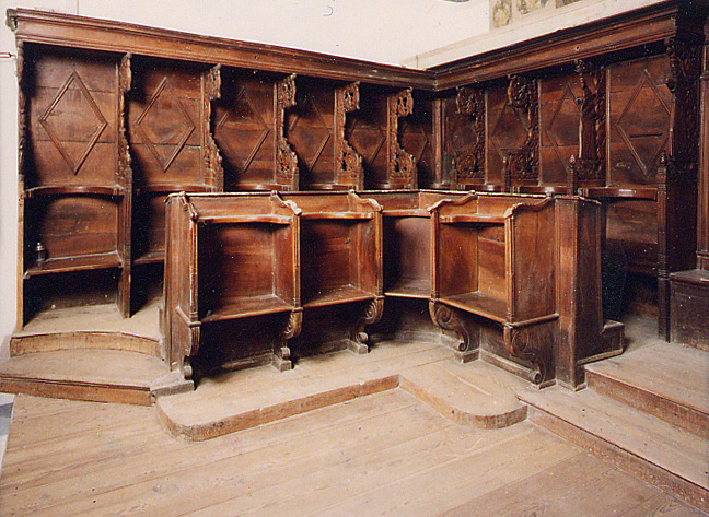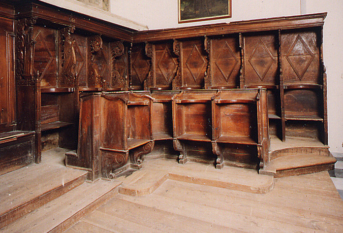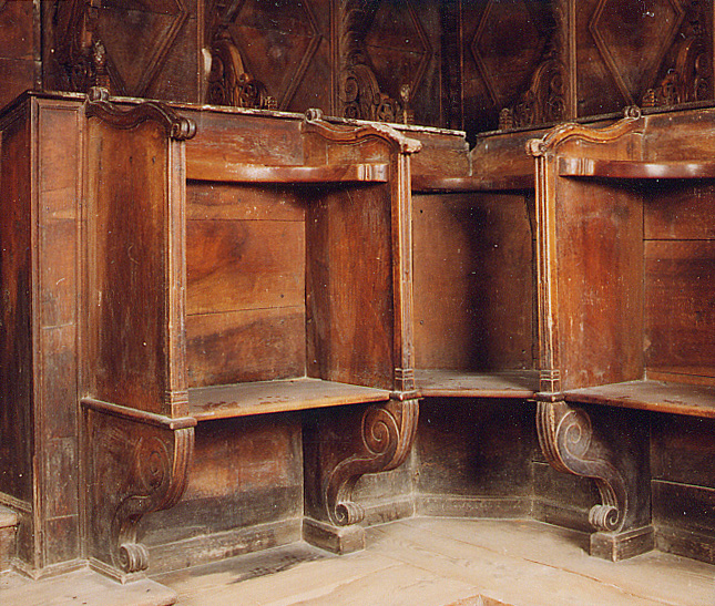 V Kopru je oratorij umeščen za glavnim oltarjem cerkve. Tu so lesene korne klopi s sedeži postavljene ob stene prezbiterija. Imajo rahlo amfiteatralno postavitev: prislonjene so ob tri zidove tako, da se odpirajo v smeri proti glavnemu oltarju in tabernaklju v cerkvi. Sedeži so razporejeni v dveh vrstah. Na sredini je postavljen »legile«. Spodnji del je omara, namenjena shranjevanju liturgičnih knjig. Nad omaro se na stebričku dviga pult, narejen tako, da je možno nanj položiti knjigo z obeh (nasprotnih) strani, kar omogoča večini molivcev, da vidijo besedilo in note.